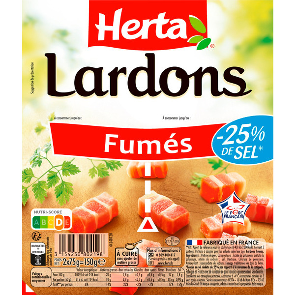 Acheter Lardons Fumés Herta , identifié par le code barre EAN 3154230802198. En vente moins cher en ligne