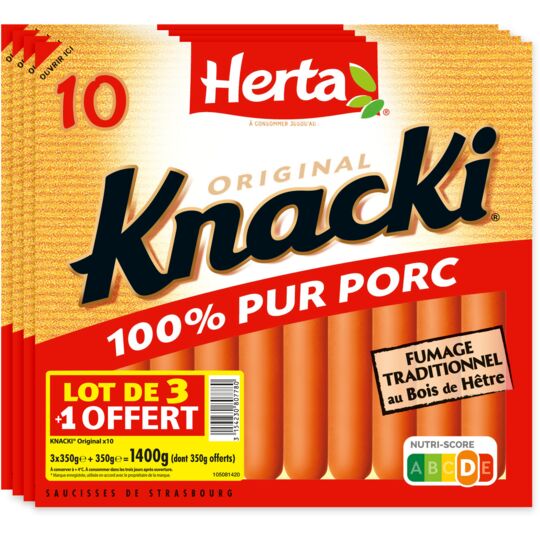 Acheter Saucisse knacki HERTA , identifié par le code barre EAN 3154230807780. En vente moins cher en ligne