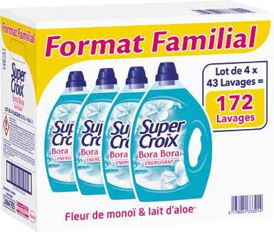 Également disponible au même prix en Lessive Liquide Super Croix 43 lavages (=2,15 L. Le L à l’unité : 3,90 €) en variétés Maroc, Japon, Bora Bora et Brésil.