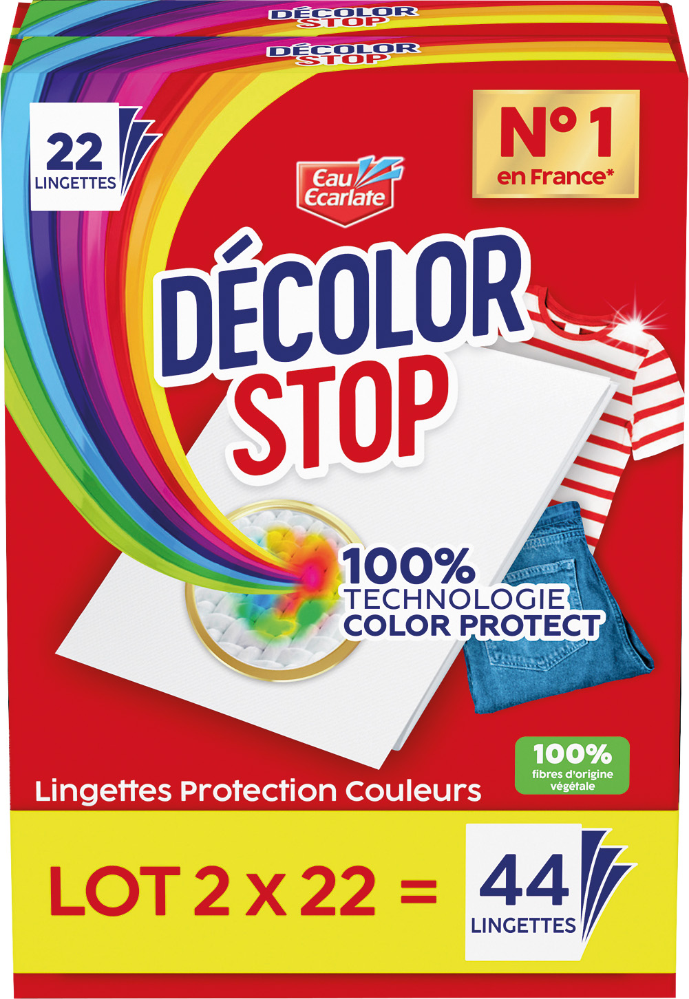 3178041356398 Evite les accidents de décoloration – Absorbe rapidement les couleurs dégorgées dans l’eau. Lingette plus grande et plus carrée, pour une efficacité renforcée*. La preuve est sur la lingette !,Permet le mélange des couleurs – Protège des transferts de couleurs, vous permettant ainsi de mélanger votre linge blanc et coloré,Préserve l’éclat des couleurs – Absorbe les couleurs dégorgées dans l’eau et préserve l’éclat des couleurs. Evite le ternissement des couleurs.,Avec un impact limité sur l’environnement – Les lingettes décolorstop sont fabriquées à partir de fibres 100% d’origine naturelle. Fibres sans microplastiques. Les lingettes sont également certifiées FSC, garantissant que les fibres des lingettes décolor stop proviennent de sources responsables.,Moins de tri = Moins de machine – Le mélange de vos couleurs vous permet de réduire vos machines. Economiser du temps, de l’eau et de l’énergie.