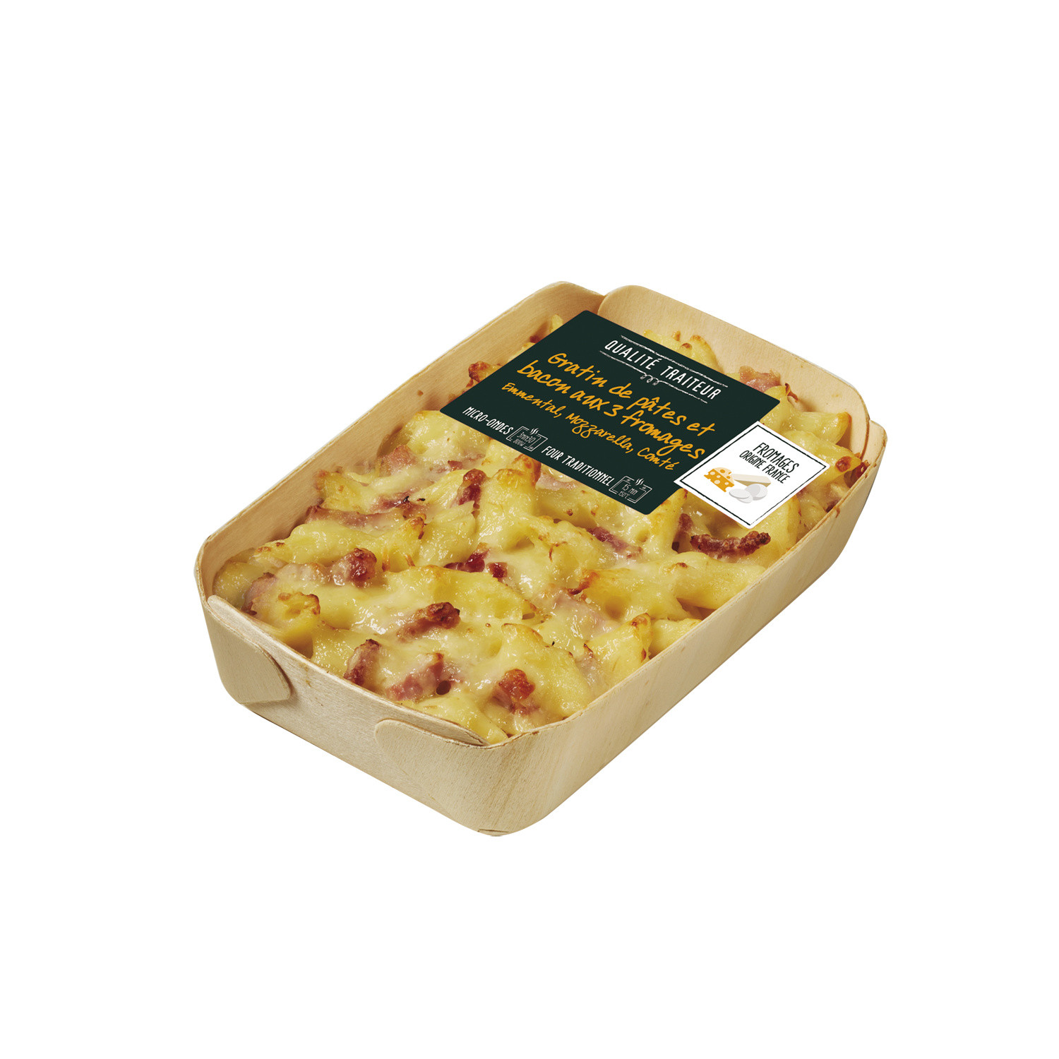 3181580280130 de Plat préparé gratin de pâtes et bacon aux trois fromages, emmental, mozzarella et comté
