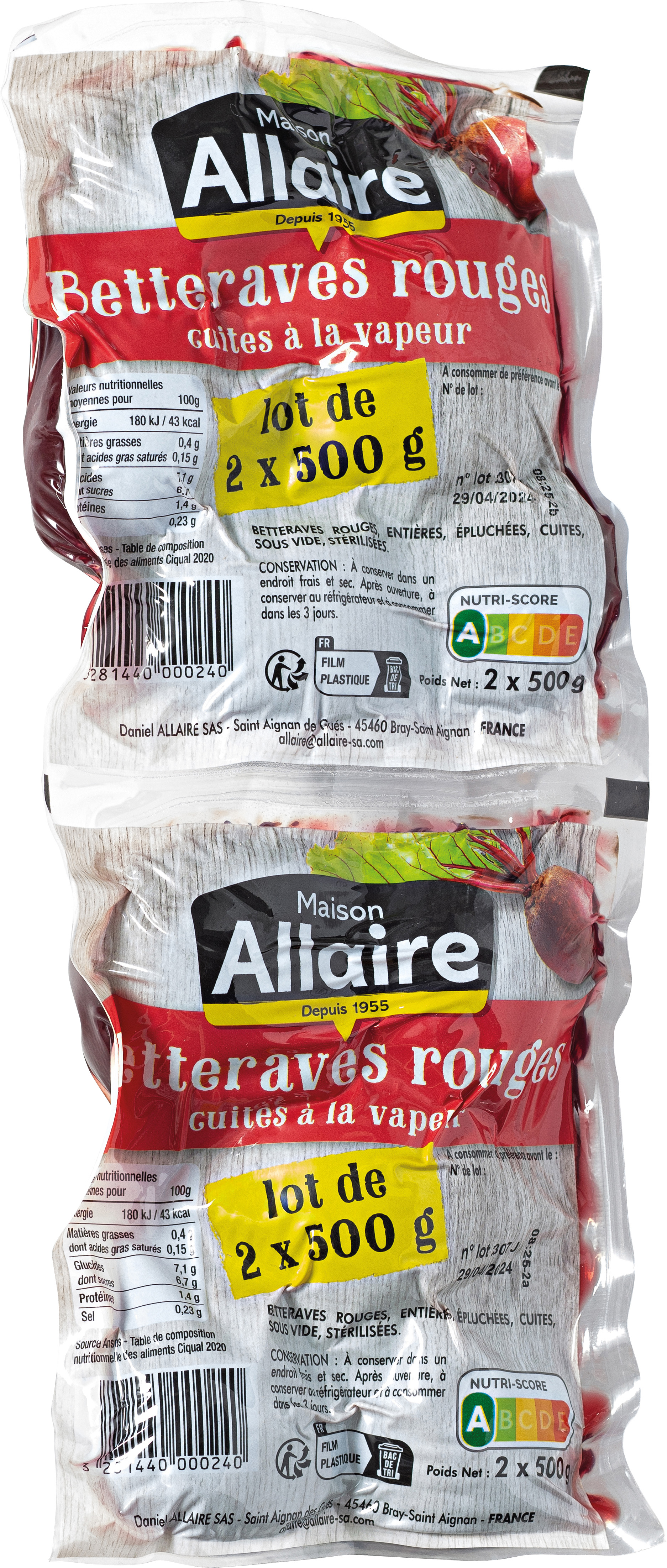 BETTERAVE CUITE RONDE SOUS VIDE ALLAIRE Le lot de 2x500g.