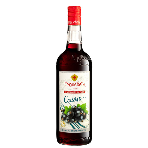 Cassis - Sucre, sirop de glucose-fructose, jus de fruits à base de concentrés 20 % (cassis 15 %, sureau), eau, arôme naturel de cassis avec autres arômes naturels, acidifiant : acide citrique.