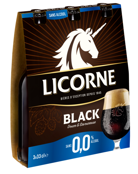 BIÈRE BLACK BY LICORNE sans alcool 3 x 33 cl - soit 99 cl - 2,87 € le litre - Offre valable du 30/09/2025 au 05/10/2025. Achetez les produits BY LICORNE moins cher en ligne.