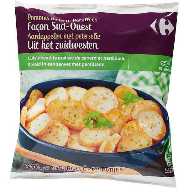 Achetez chez Carrefour les délicieuses pommes de terre cuisinées surgelées, persillées façon Sud-Ouest ou façon rôtissoire, en format de 600g. Disponibles au rayon surgelés, ces associations savoureuses raviront vos papilles avec leur goût authentique et leur texture croustillante. Savourez un repas facile et gourmand grâce à Carrefour..