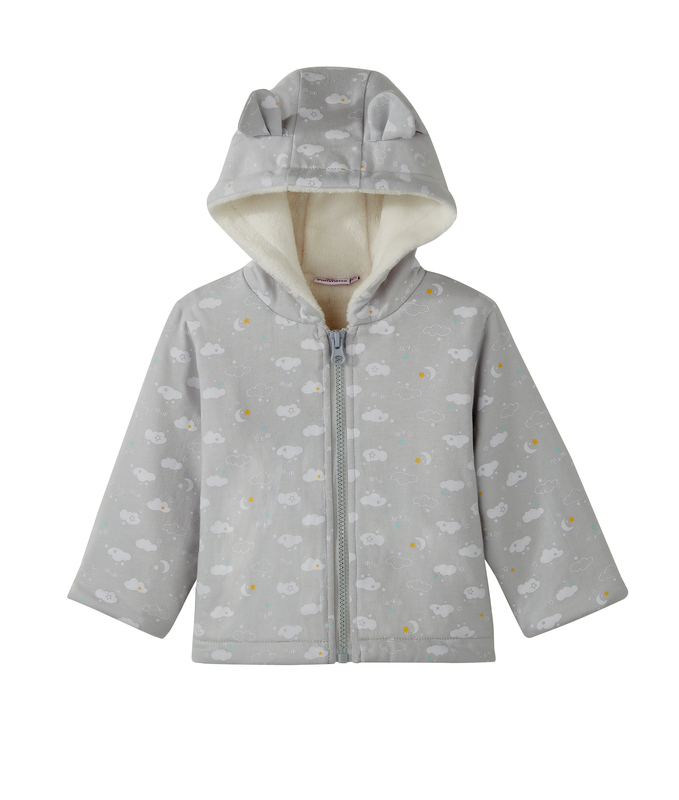 100% Coton issu de l'agriculture biologique doublure 100% polyester Coloris Unique Tailles : du 0 au 12 mois.