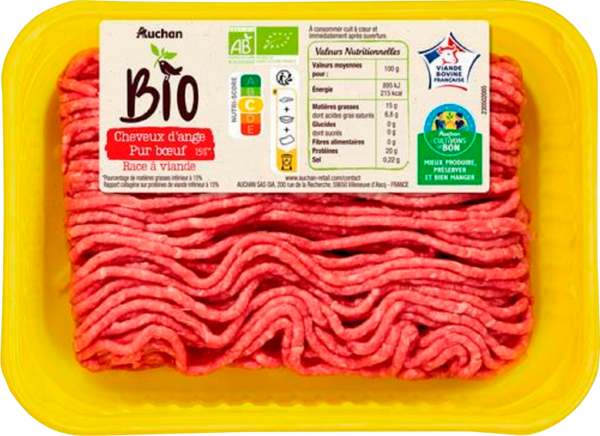 3254565416739 de Viande Hachée Pur Bœuf Bio Filière Auchan "Cultivons Le Bon"