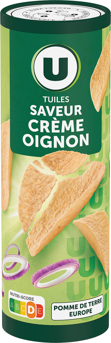 TUILES U Goût crème oignon ou barbecue ou paprika Le tube de 170 g.