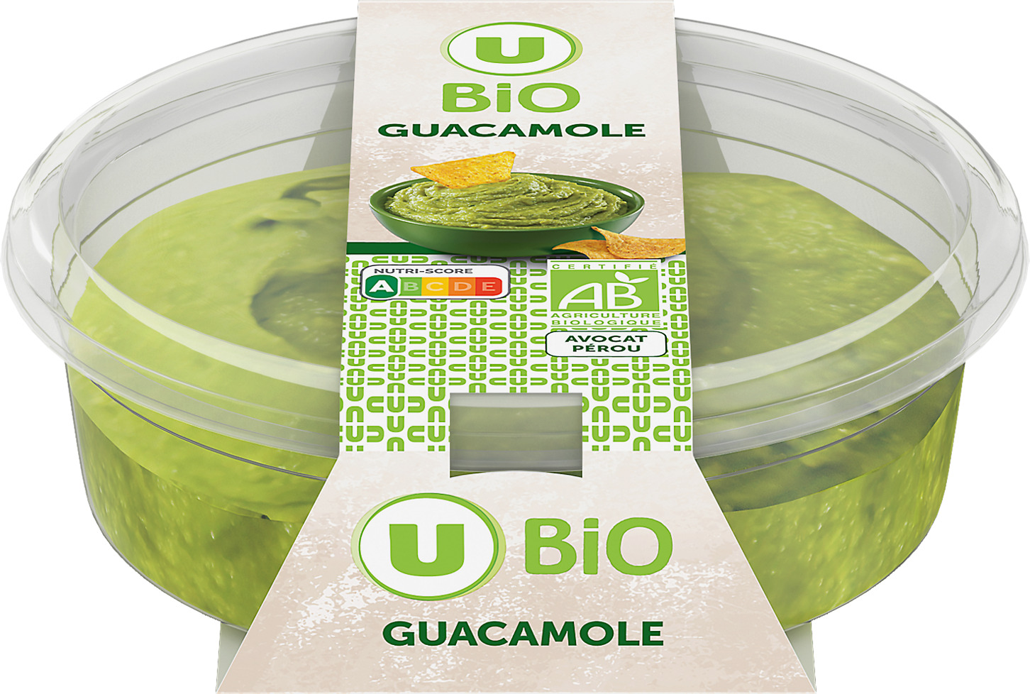 TARTINABLE U BIO Guacamole ou houmous ou tzatziki La barquette de 160 g Transformé en Belgique.
