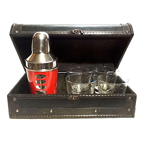 - Coffret pirate bois et simili cuir ave 4 Verres Luminarc. Coniques, fond épais et un shaker inox..