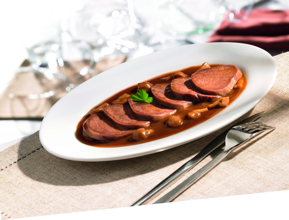 Essayez la succulente langue de bœuf, issue de France et disponible en barquette de 900g, au même prix au kilogramme. Délectez-vous de sa tendresse et de sa saveur, délicieusement sublimée par la sauce Madère ou la sauce piquante "Tradilège". Un délicieux plat à déguster en toute convivialité..