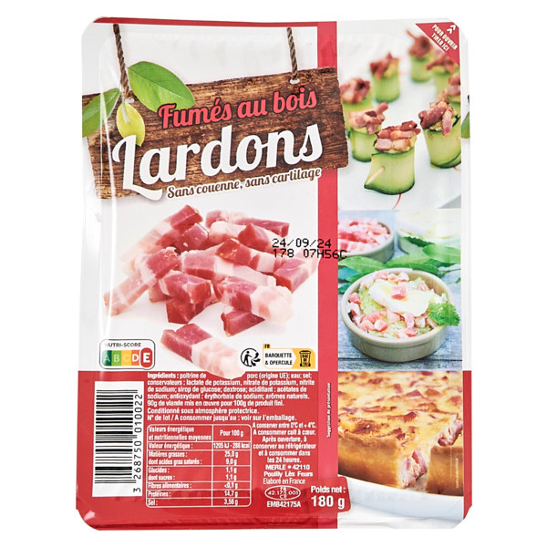 Les lardons fumés sont un incontournable dans la cuisine, notamment pour apporter une touche de saveur fumée à de nombreux plats. Le produit portant le code barre ean: "3268750010022" est disponible chez Leclerc. Les lardons fumés sont un produit de qualité à prix abordable, parfait pour agrémenter vos plats en toute simplicité.