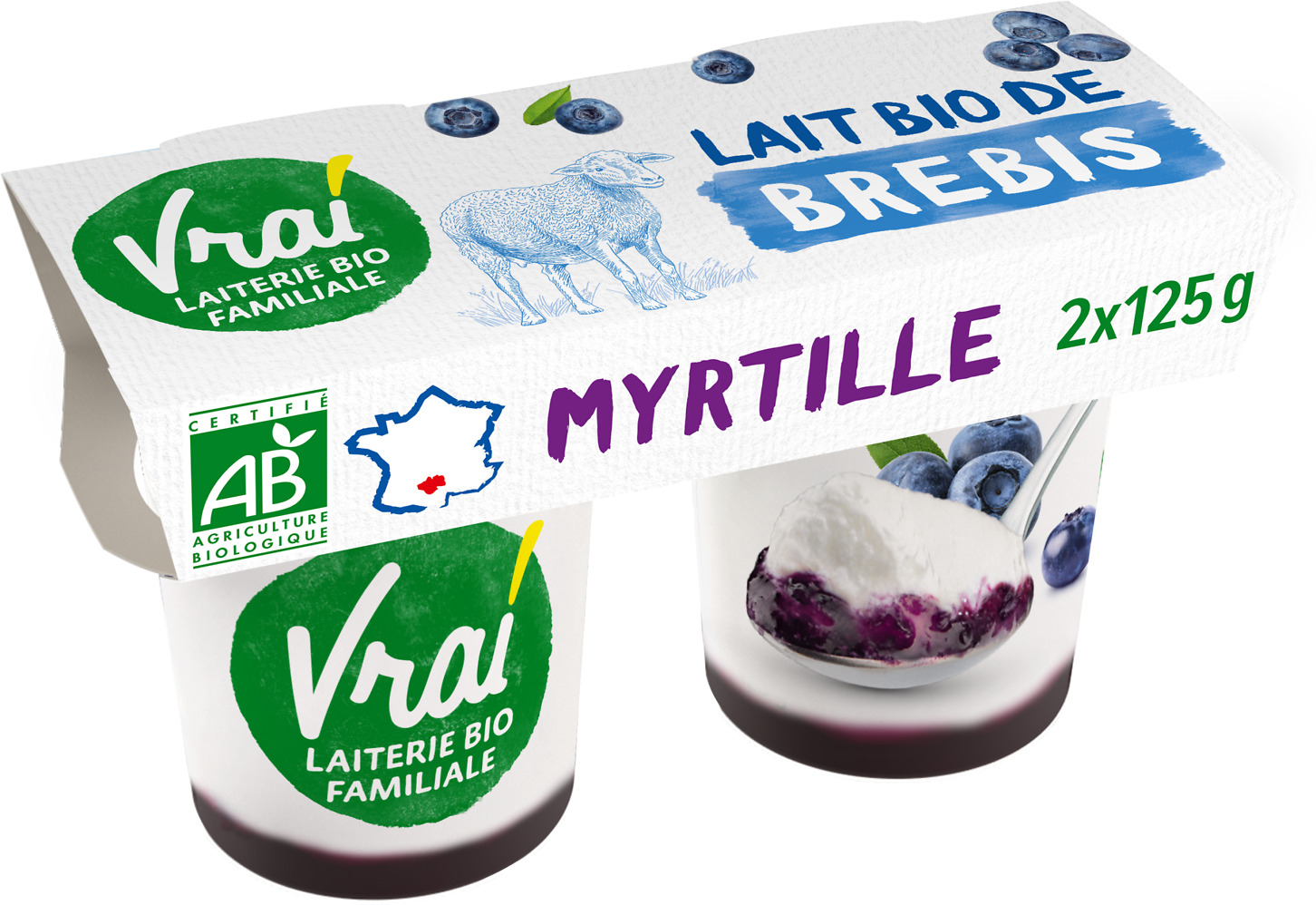 YAOURT AU LAIT DE BREBIS BIO VRAI Sur lit de myrtille ou châtaigne