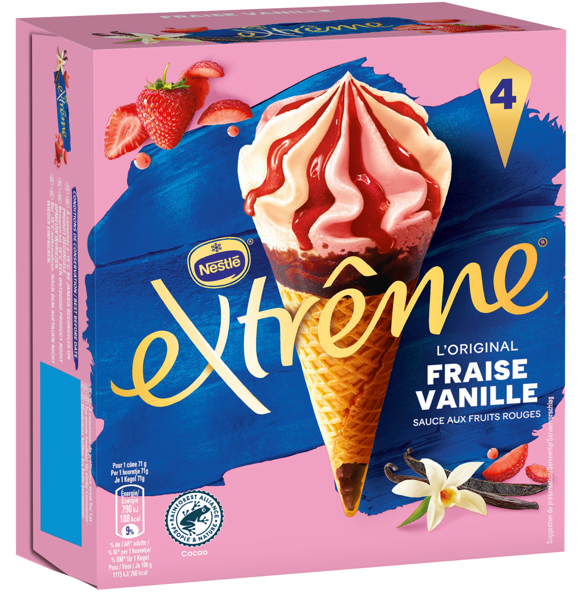 EXTRÊME 4 cônes glacés Fraise Vanille dans les catalogues