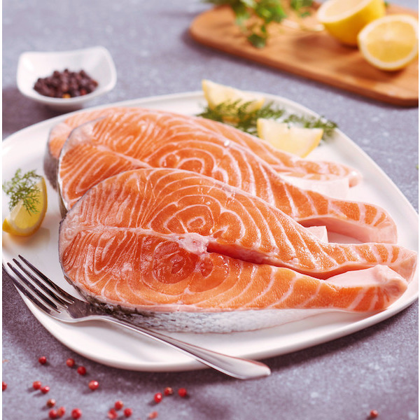Privilégiez la darne de saumon Atlantique FILIÈRE QUALITÉ CARREFOUR ASC, élevée en Norvège sans antibiotique ni OGM (0,9%). Une option saine et savoureuse pour vos repas..