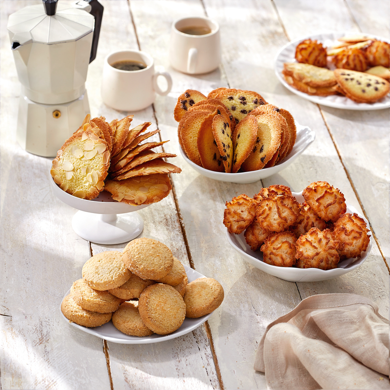 ou Tuiles au chocolat pur beurre 140 g - 20,71 € le kg ou sablé diamant 190 g - 15,26 € le kg ou Rochers coco 400 g - 7,25 € le kg.