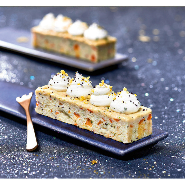 La pièce de 75 g. (A) ÉLABORÉS EN FRANCE AU RAYON TRAITEUR À LA COUPE Existe aussi en frisson de saumon au piment d'Espelette. .