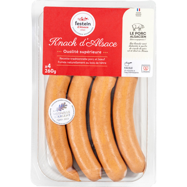 Knaks Fumées D'alsace Festein , identifié par le code barre EAN 3289744092008. Acheter Knaks Fumées D'alsace Festein moins cher en ligne