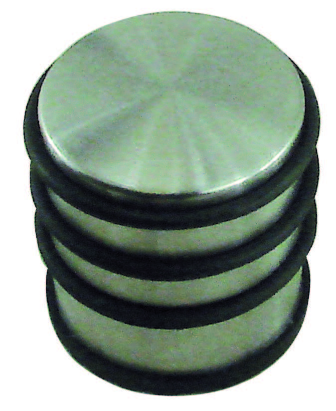 En acier nickelé satiné. Dim. : H 75 x Ø 65 mm..