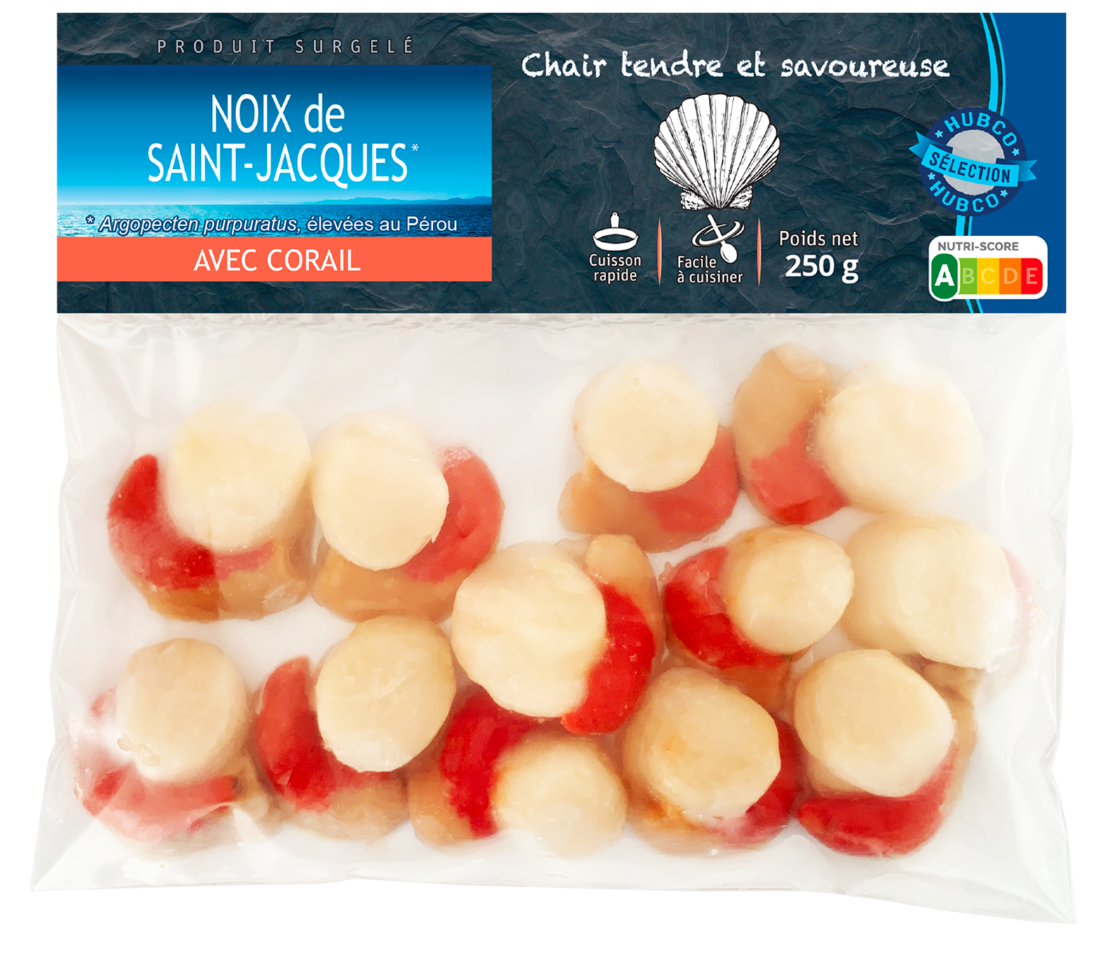 “HUBCO” NOIX DE SAINT-JACQUES AVEC CORAIL SURGELÉES**
