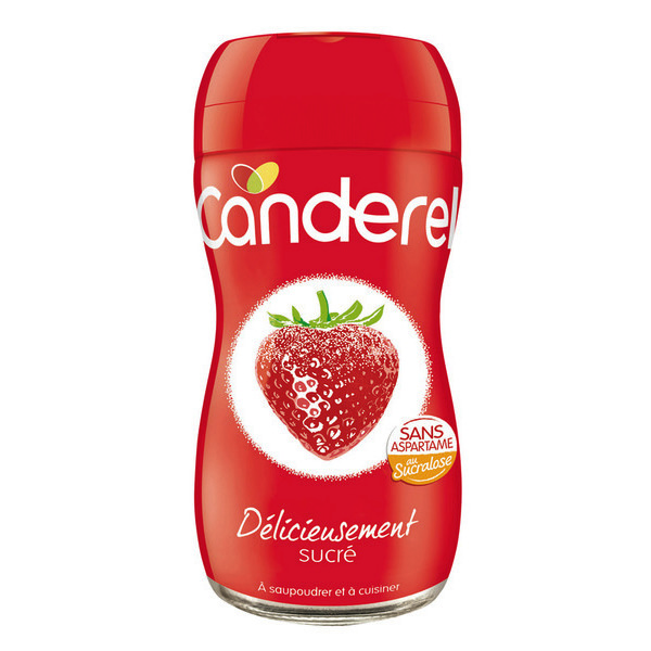 Le pot de poudre Canderel 80g - Ingrédients: maltodextrine,édulcorant :sucralose (0.98%) |