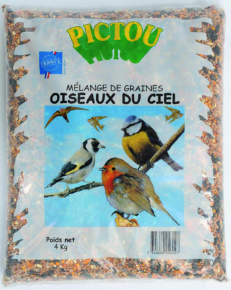 PICTOU2 - MÉLANGE DE GRAINES : Nourrissez les oiseaux de la nature avec ce sac de 4 kg. À seulement 0,58 € le kg, ce mélange est idéal pour leur alimentation. Obtenez une nourriture de qualité sans plus tarder. Exclusivement disponible ici..
