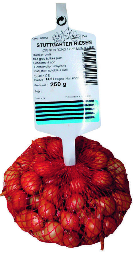 Plusieurs variétés au choix : Stuttgart Riesen calibre 14/21, Sturon calibre 14/21, Red Raron calibre 14/21.