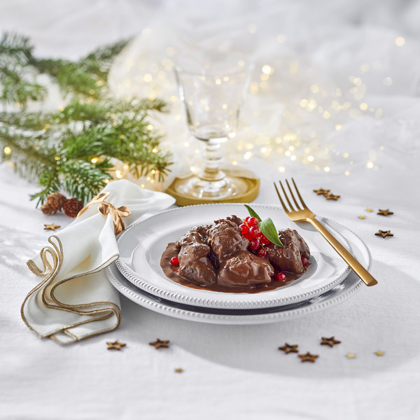 ou civet de sanglier ou sauté de cerf à la bière de noël (également disponibles au rayon frais emballé à 13.23€ la barquette de 700g - 18.90€ le kg)