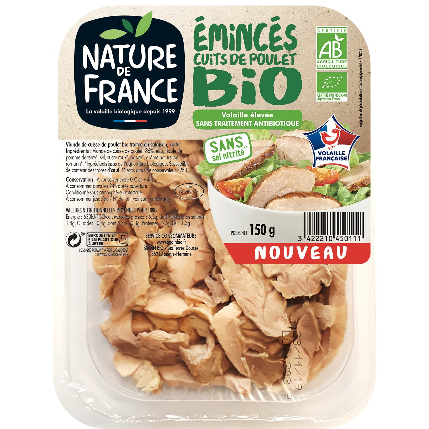 NATURE DE FRANCE Emincé de poulet rôti nature Bio NATURE DE FRANCE dans les catalogues