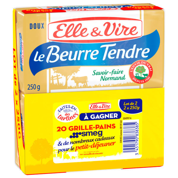 Acheter Le Beurre Tendre Elle & Vire , identifié par le code barre EAN 3451790838408. En vente moins cher en ligne