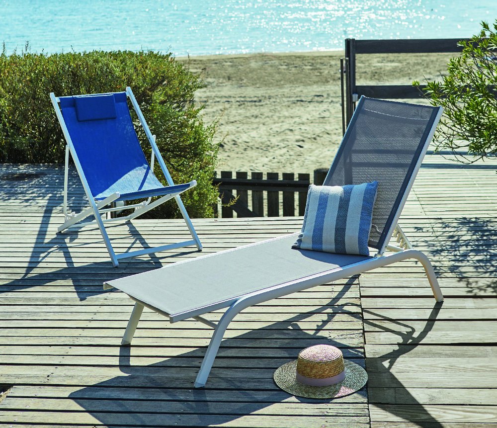 Allongez-vous et détendez-vous sur ce bain de soleil empilable en aluminium blanc, disponible en textilène bleu ou gris. Ses dimensions généreuses de L. 188 x l. 58 x H. 30 cm créent l'espace parfait pour profiter du soleil. Confortable et élégant, ce bain de soleil est idéal pour se reposer et se ressourcer en plein air..