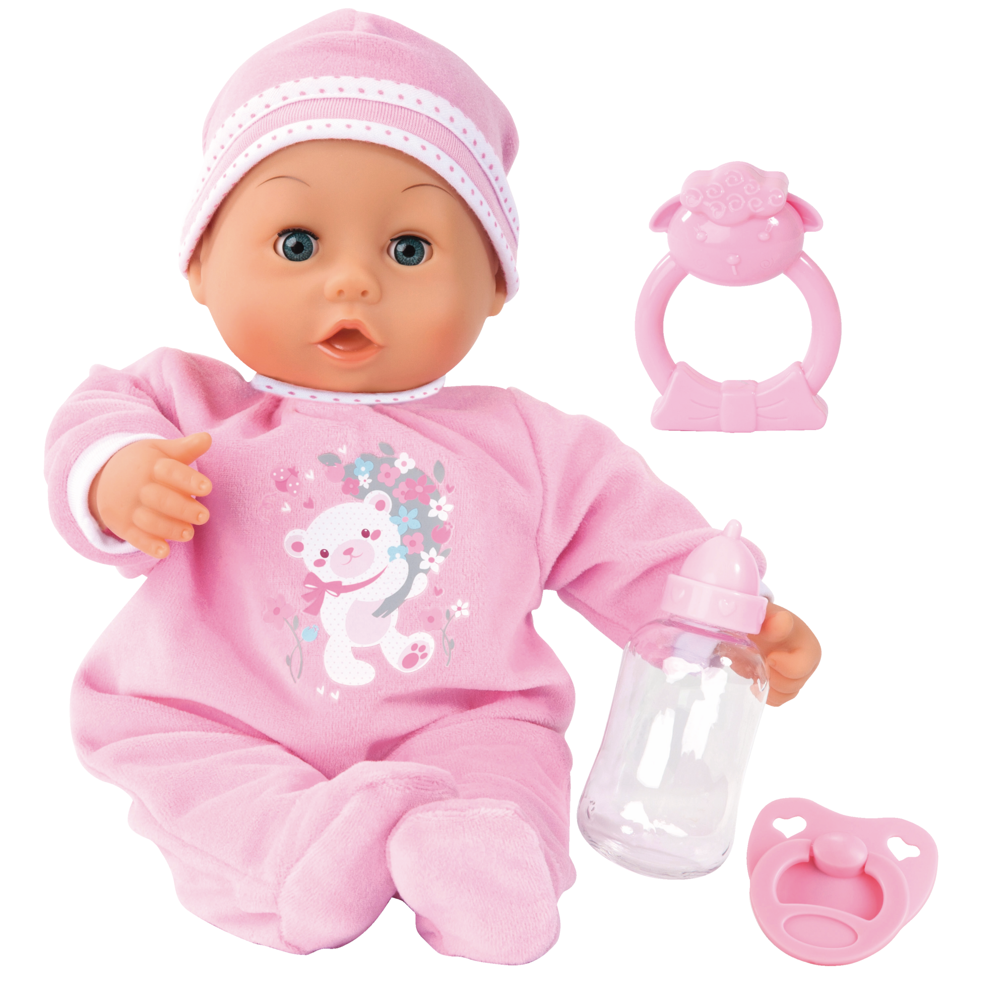 1. Poupon de 38 cm env. avec 26 sons différents. Dès 18 mois.