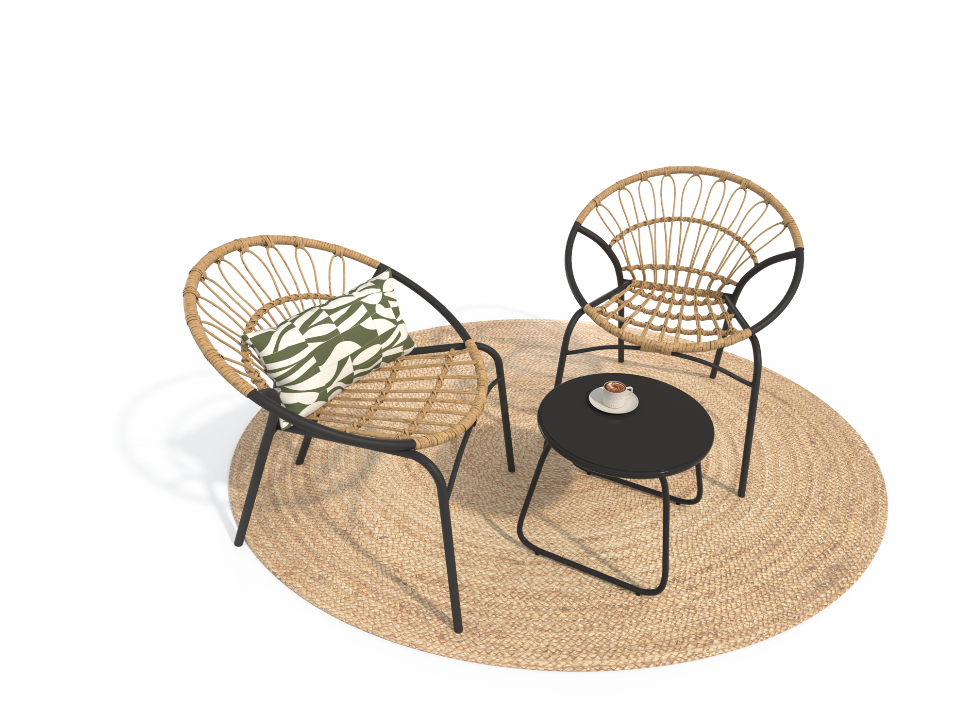 Structure en acier traité époxy recouverte de polyéthylène tressé coloris osier naturel.