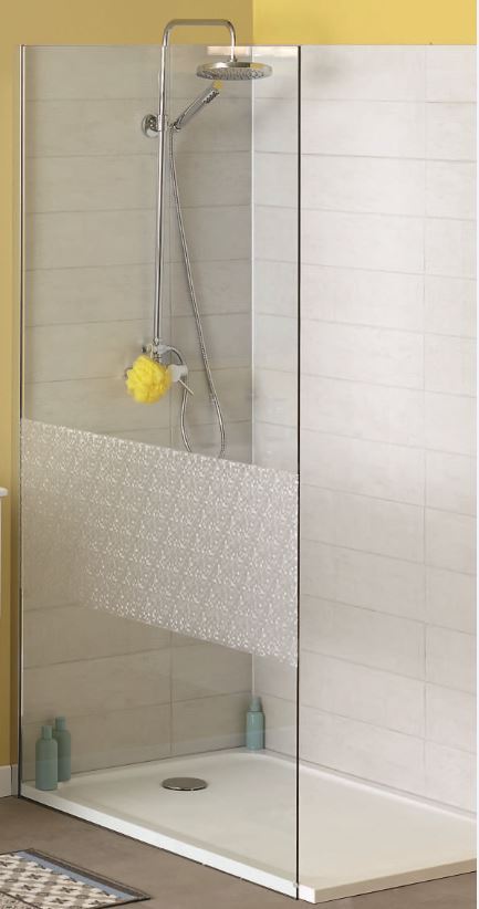 En PVC. Dim. : 0,90 x 2 ml. Existe aussi en transparent, motif galet, ciment et carreaux..