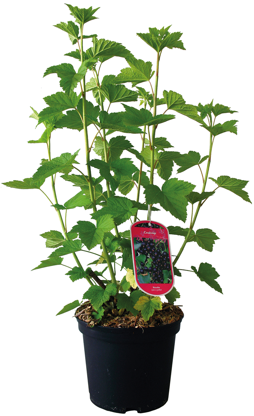 Ribes nigrum Pot de 2 L. Plantation : Automne Récolte : Été Hauteur adulte : 1 à 1,50 m Exposition : Soleil, mi-ombre