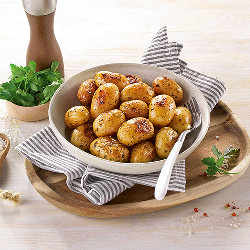 ÉLABORÉ EN FRANCE AU RAYON TRAITEUR À LA COUPE - Existe aussi en pommes de terre à la mexicaine, en pommes dorées ou en pommes dauphines 500 g.