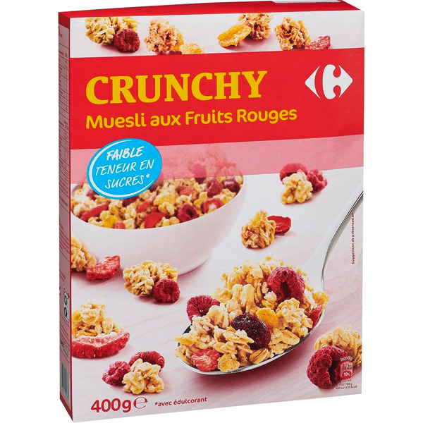 Muesli aux fruits rouges ou Muesli chocolat noisettes, 400 g. - .