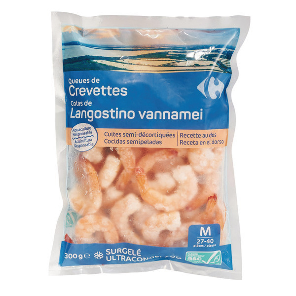 carrefour Queues de crevettes cuites semi-décortiquées surgelées dans les catalogues