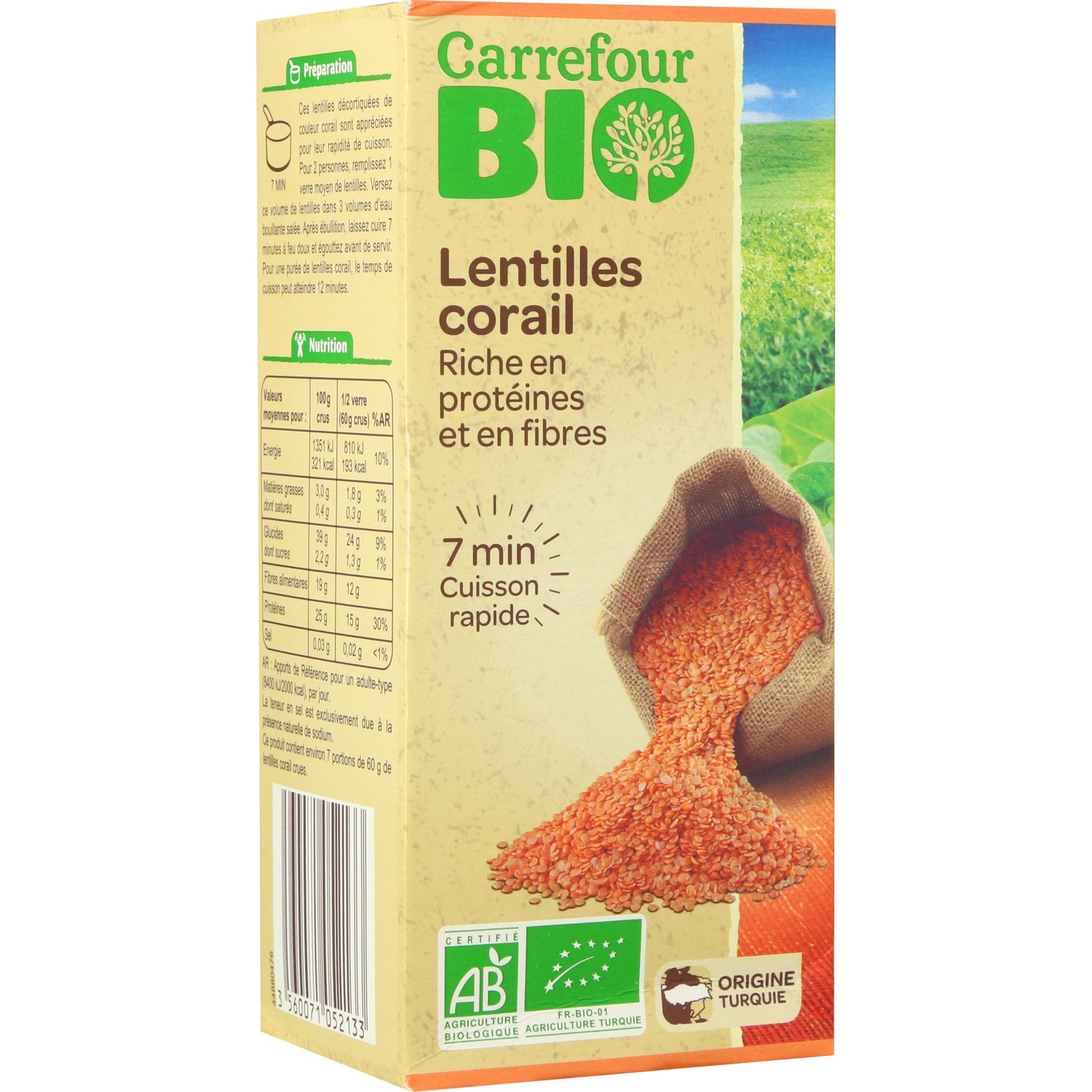 Acheter Carrefour Lentilles corail BIO , identifié par le code barre EAN 3560071052133. En vente moins cher en ligne