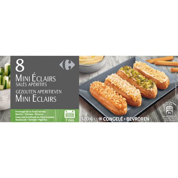 Acheter carrefour Mini Éclairs salés apéritifs surgelés , identifié par le code barre EAN 3560071190767. En vente moins cher en ligne