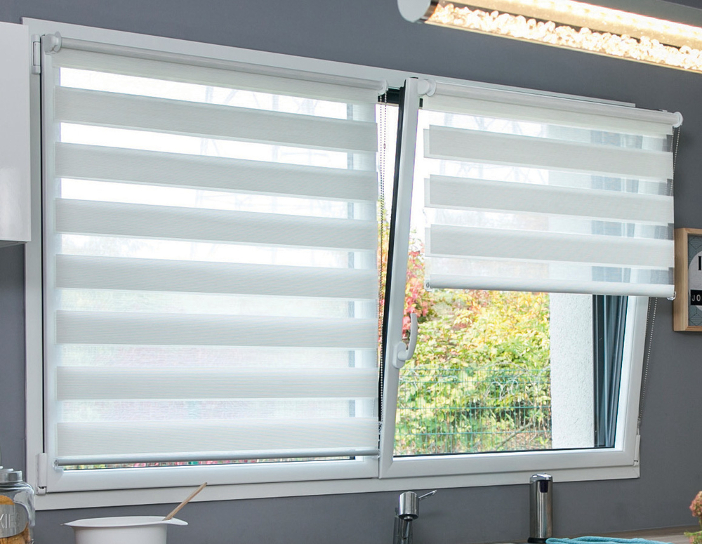 Tissu mat uni, 100% polyester. Dim. : l. 37 x H. 160 cm env. Mécanisme à chaînette blanc. Tamisant. Effet voilage. Coloris blanc ou gris. Existe aussi en l. 42 cm env. au prix de 16,90 €, en l. 52 cm env. au prix de 18,90 € et en l. 62 cm env. au prix de 20,90 €. Pose facile en moins de 5 min et sans perçage.
