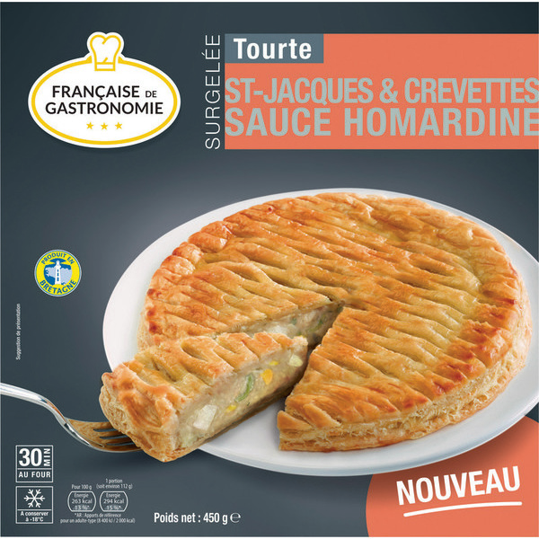 Savourez la tourte surgelée St-Jacques & crevettes, ris de veau ou oignons de la marque francaise-de-gastronomie. Disponible au rayon surgelés, ce délice de 450g vous promet une explosion de saveurs. Laissez-vous tenter par cette spécialité culinaire qui vous transportera au cœur de la gastronomie française. Essayez les autres variétés ou grammages disponibles en magasin pour une expérience gustative inoubliable..