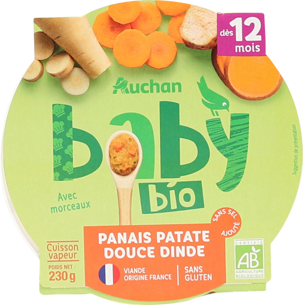 AUCHAN BABY BIO Auchan Baby Bio Panais, Patate Douce Et Dinde ? Avant d'effectuer votre achat, Zounko