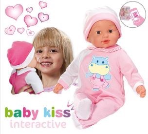 Cicciobello veut te faire des bisous ! Il reconnait 4 actions de jeu : bisous, avion, biberon et tétine. + 20 phrases et sons !