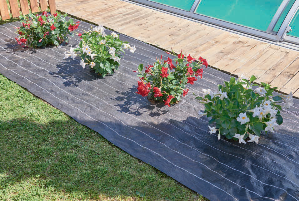 En toile noire. Rouleau 1 x 10 m. Densité: 40g/m². Protège contre les mauvaises herbes et maintient l'humidité du sol. -