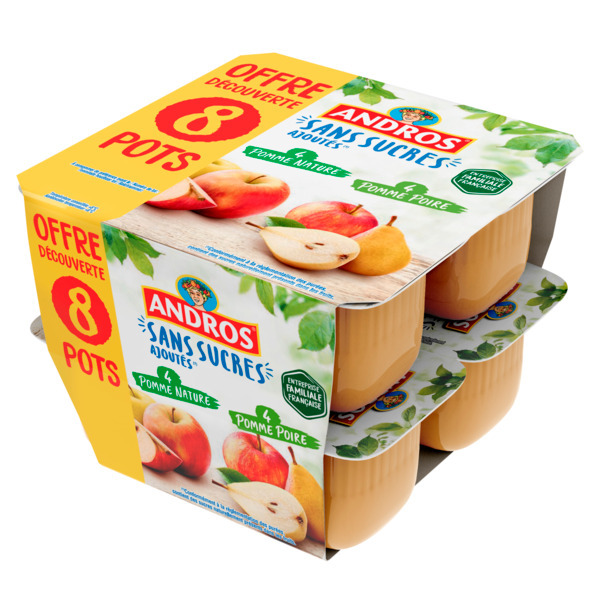 Pomme/Poire, Pomme/Fraise ou Pomme/Mangue, 4 x 90 g. - -