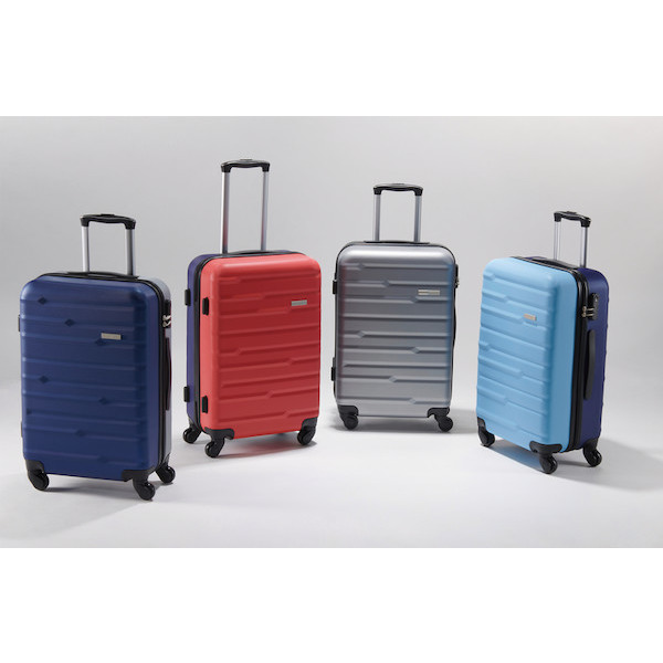 En polyester, ABS et polyéthylène. 4 roues. Canne télescopique intégrée multipositions avec bouton poussoir. Cadenas intégré. À partir de Disponible en différents coloris.La valise cabine* 4 roues .