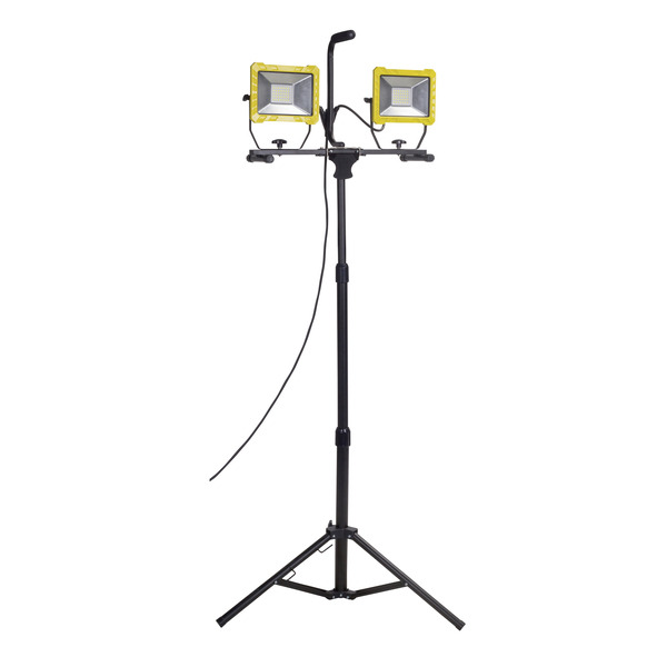 Projecteur sur pied réglable en hauteur avec 2 têtes amovibles.