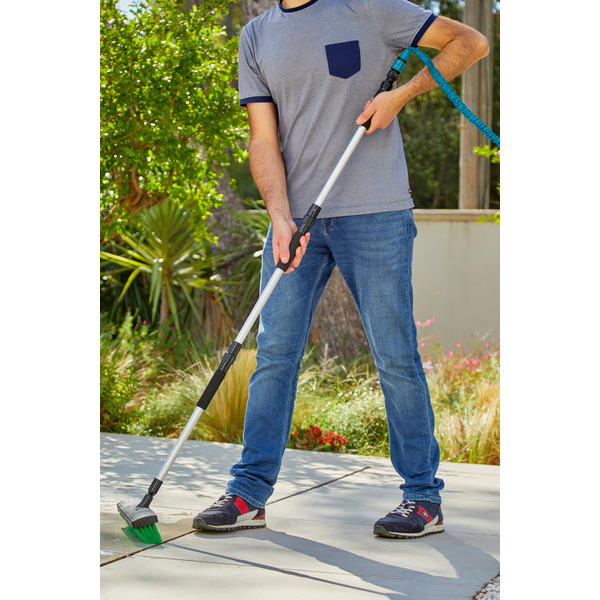 Pour le nettoyage de votre terrasse, connecter ce balai directement au tuyau d'arrosage. Grâce au balai brosse et ses 14 jets, vous pourrez facilement frotter et nettoyer pour une terrasse impeccable.