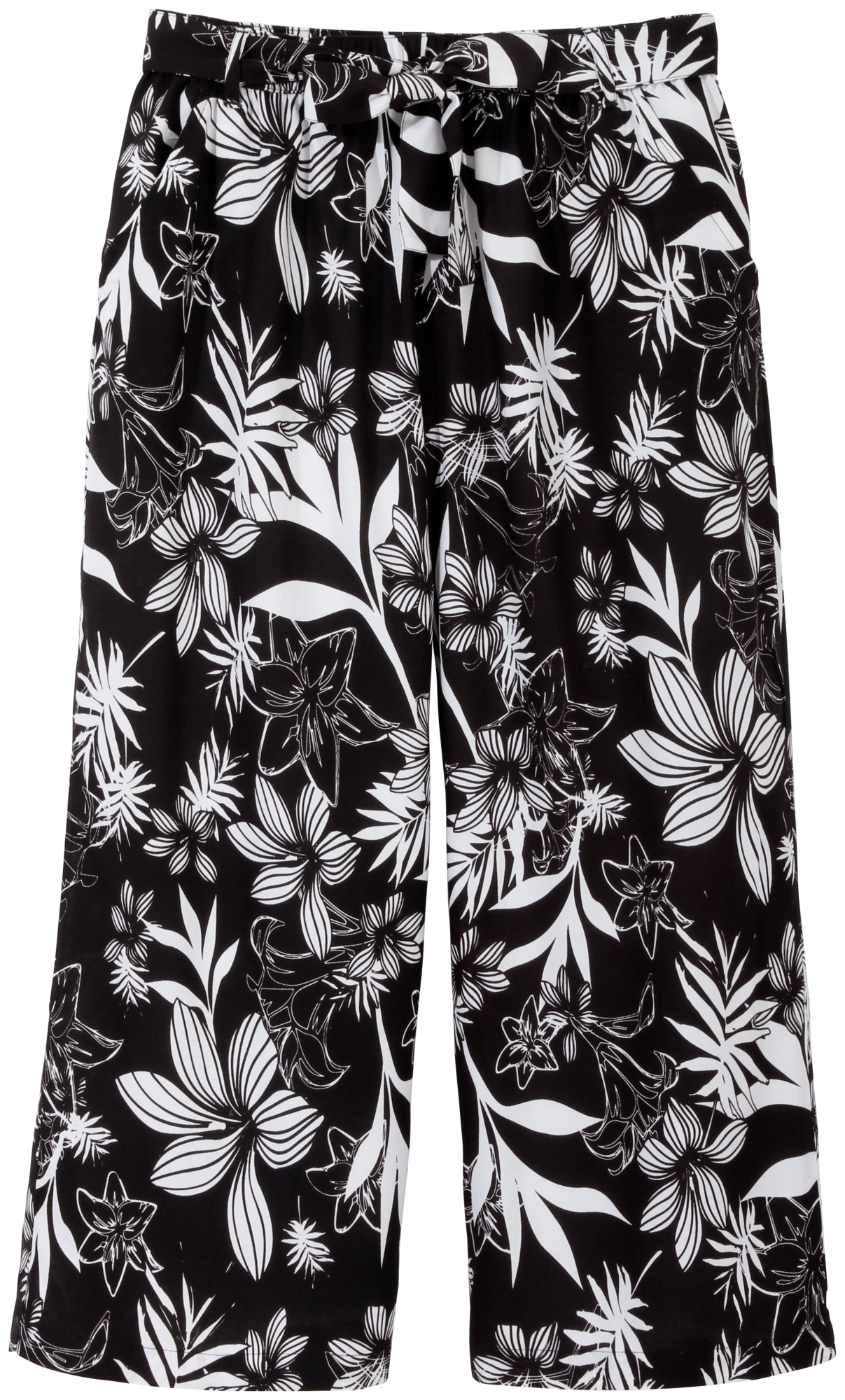 Noir fantaisie : 100% Viscose. Du 36 au 46. Kaki : 98% Polyester recyclé, 2% Elasthanne. Du S au XL.